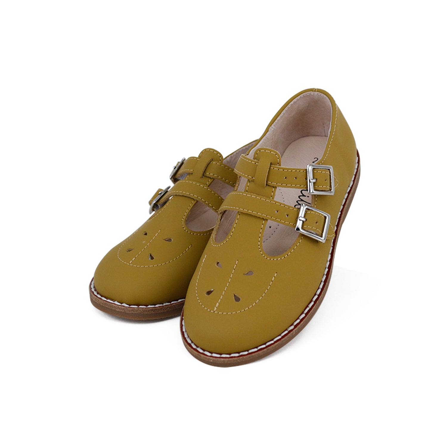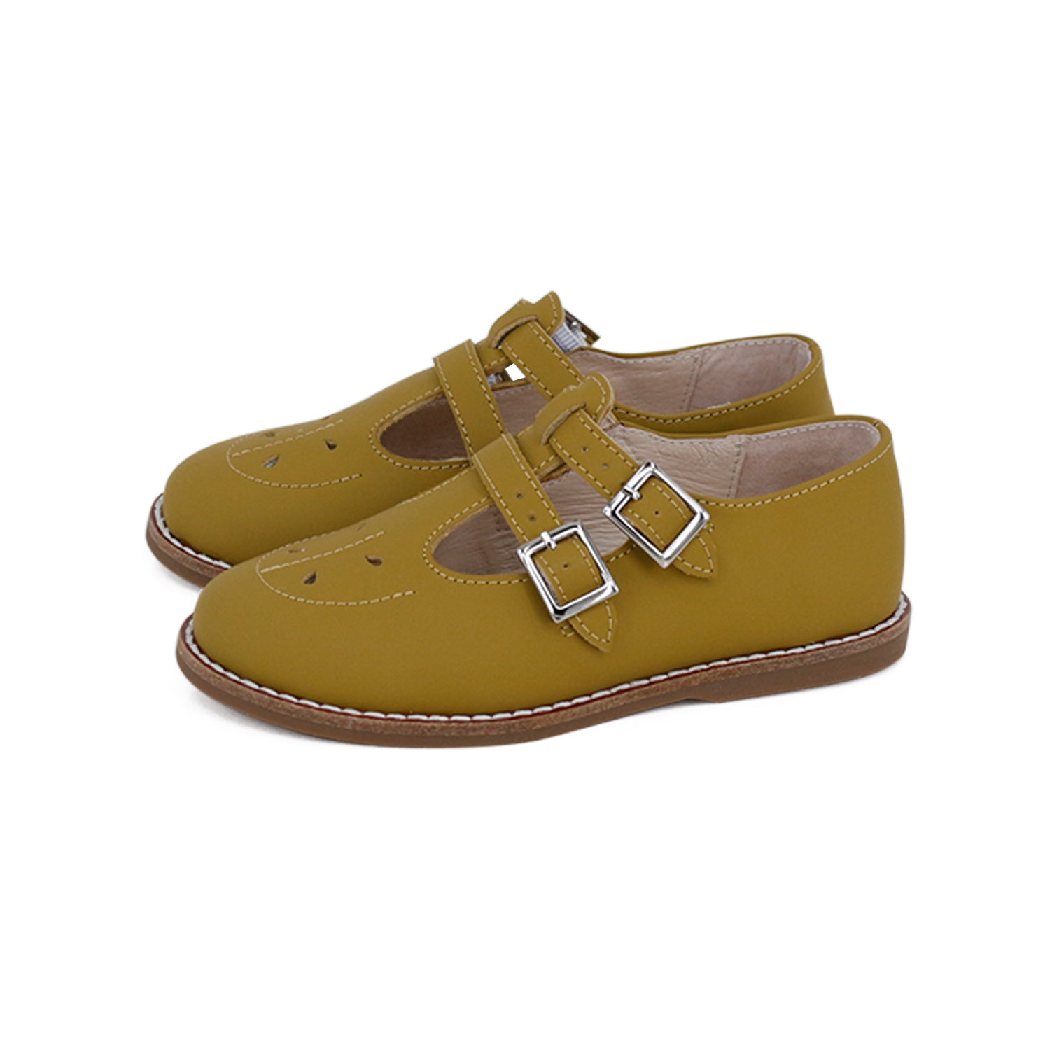 Mustard Rubber Estella Clunky-  crafted in soft rubber-finish leather, featuring double buckle straps, classic teardrop cut-outs, and a classic handcrafted sole