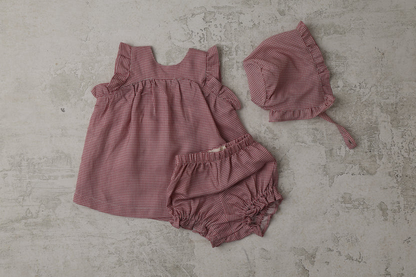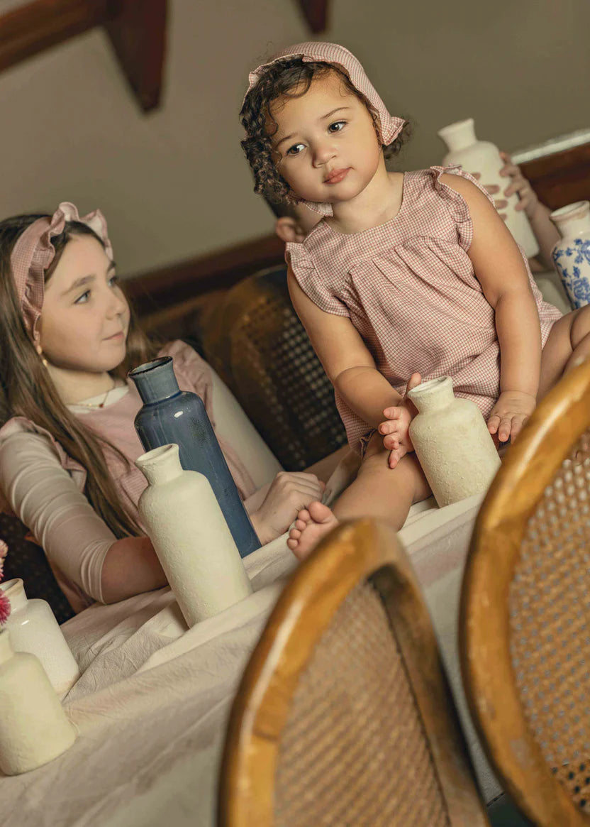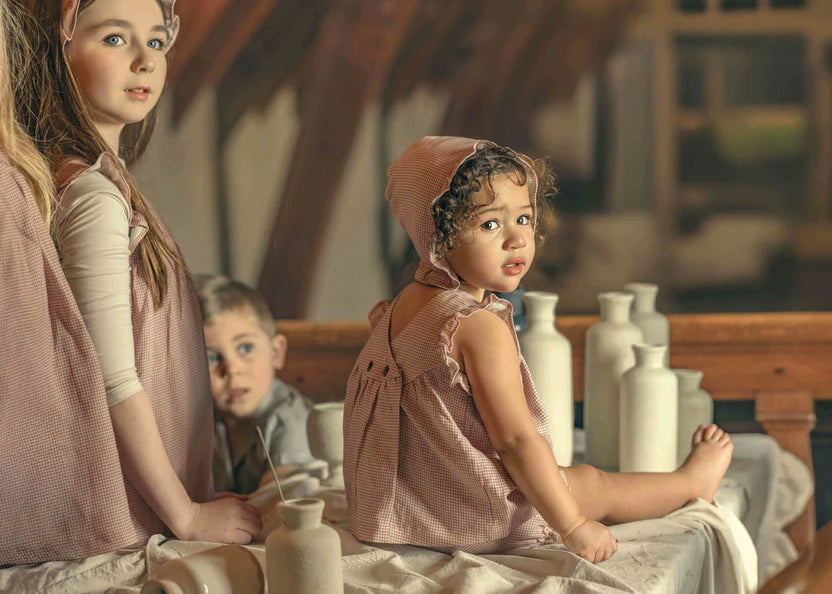 Crafted from a luxurious blend of linen and Tencel, this checkered girls set combines breathability with refined elegance. The classic brick-toned pattern offers timeless appeal, while the natural fibers provide exceptional comfort for warm weather wear. Perfect for special summer occasions, this two-piece set features thoughtful construction that moves with your child. The linen-Tencel combination ensures durability without sacrificing softness, making it an ideal choice for memorable moments .