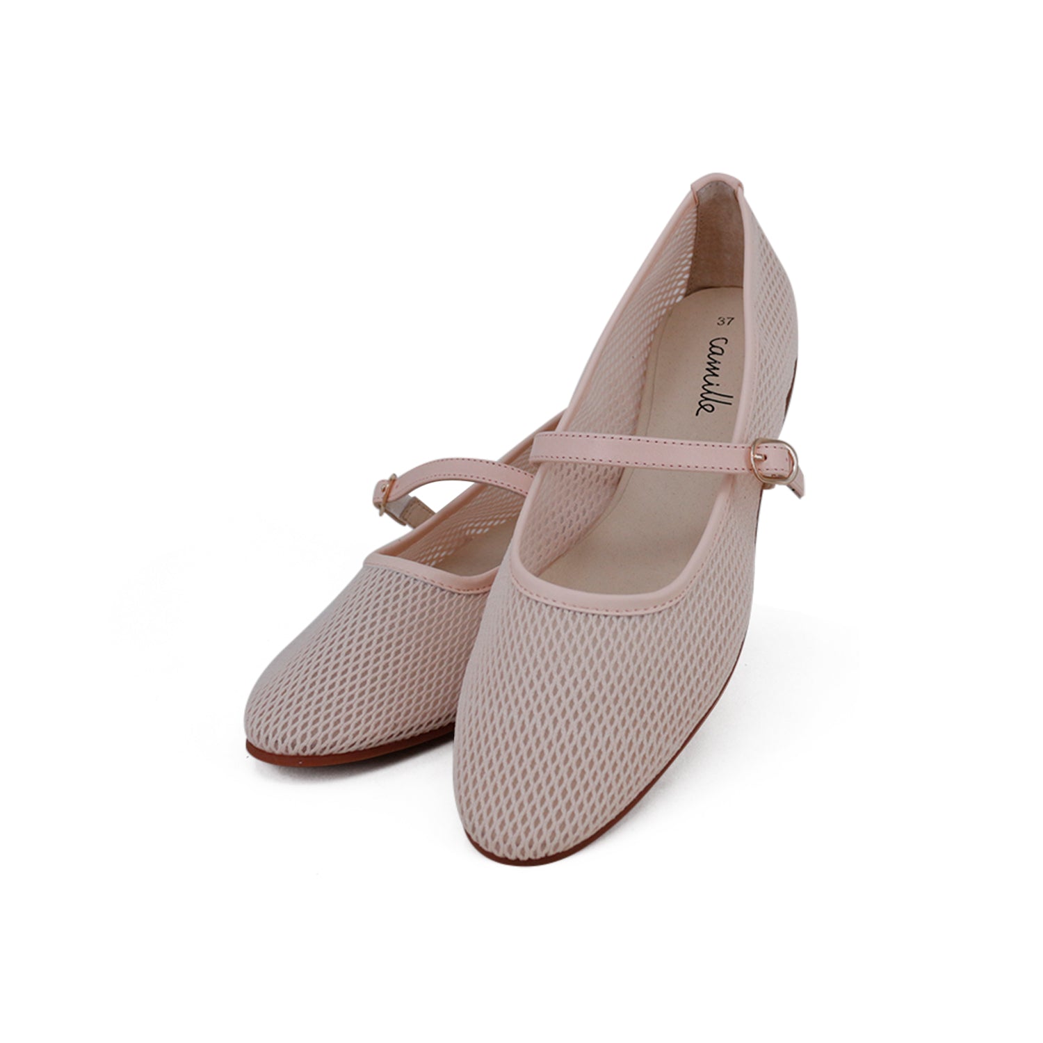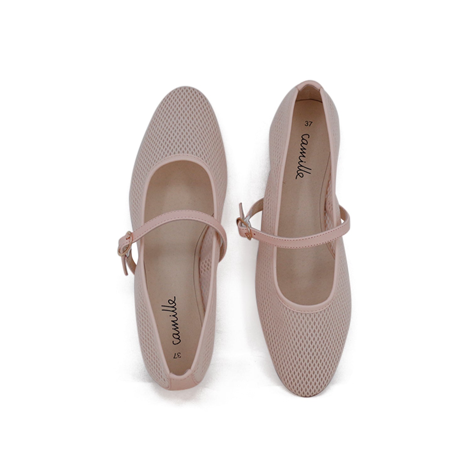 Piper for Adults Mesh Pink- A modern Mary Jane in breathable stone mesh, crafted for understated elegance and effortless wear.